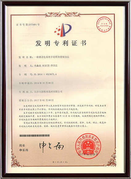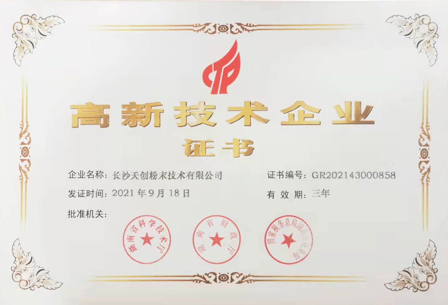 長沙天創粉末技術有限公司擁有多項發明專利證書、商標注冊證、ISO9001質量管理體系認證證書、歐盟CE認證書等。
