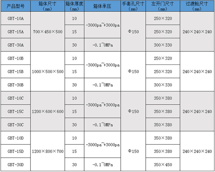 三、有機玻璃手套箱技術參數