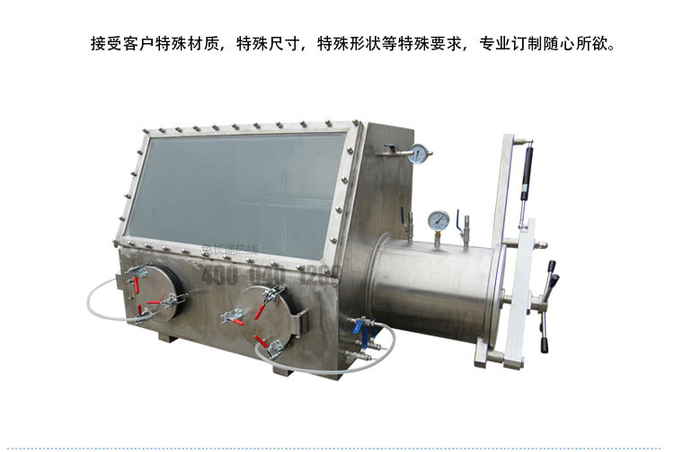 真空手套箱主要由主箱體和底座組成,如用戶有其它特殊要求,也可以根據(jù)需要進行設計或改造;箱體上有二到三個手套操作接口,操作箱迎面為有機玻璃,視角廣闊,操作者能夠清楚地觀察到箱體內的操作過程,使得操作過程較直觀地展現(xiàn)在操作者的眼前。箱體上有二個真空球閥,用戶可根據(jù)需要使用。球閥的內外安裝接水嘴,在需要通水或通氣的情況下可由此接入。箱體內裝了照明燈泡和多孔插座。