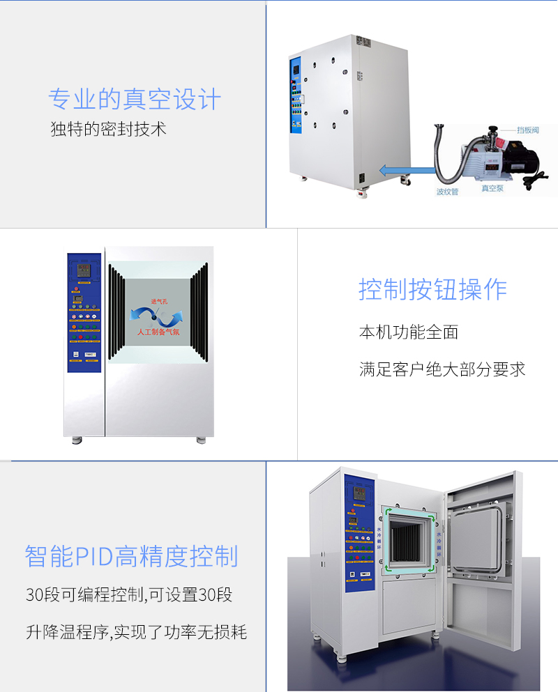 ▪控溫精密,具備多種控溫器可供選擇,溫度波動(dòng)。ǹ販鼐取1℃)。真空度最高可達(dá)到0.1兆帕,正壓可到0.09兆帕。