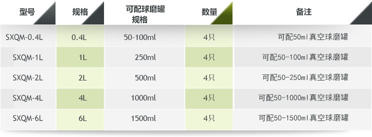 表一:雙行星式球磨機配罐參考