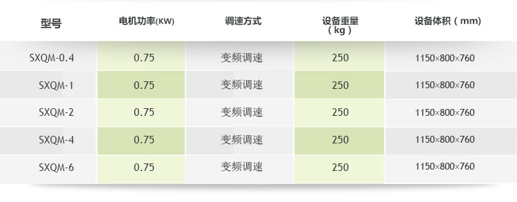 表三:雙行星式球磨機主要參數